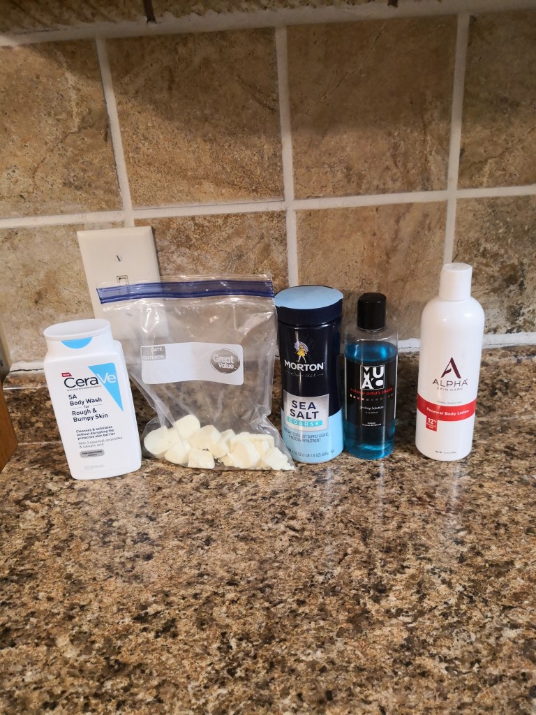 1. CeraVe SA Bodywash- This is a body wash that contains salicylic acid, niacinamide and ceramides. Its purpose is to smooth out bumpy skin in a gentle. It has absolutely no fragrance due to the fact that they sometimes cause irritation.