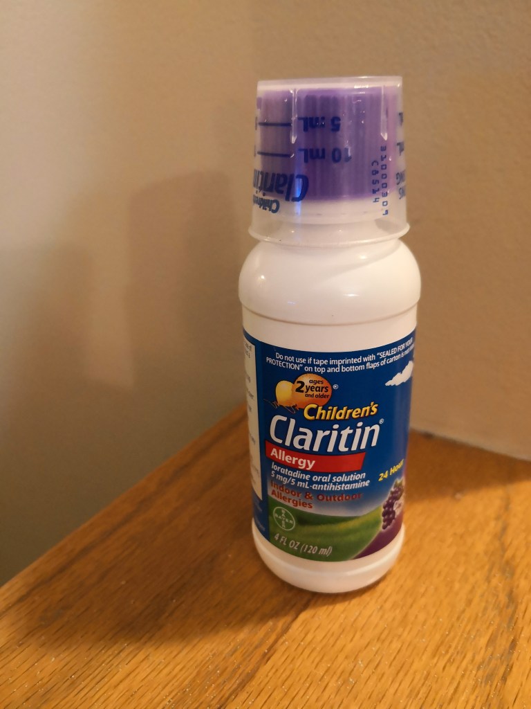 I had some Claritin Kid’s syrup in the cupboard for my son so I decided that I was going to start taking it everyday and see what happened. Since I am always worried about side effects, I was nervous about how it might affect me but I knew that it would probably not be as bad as Benadryl.