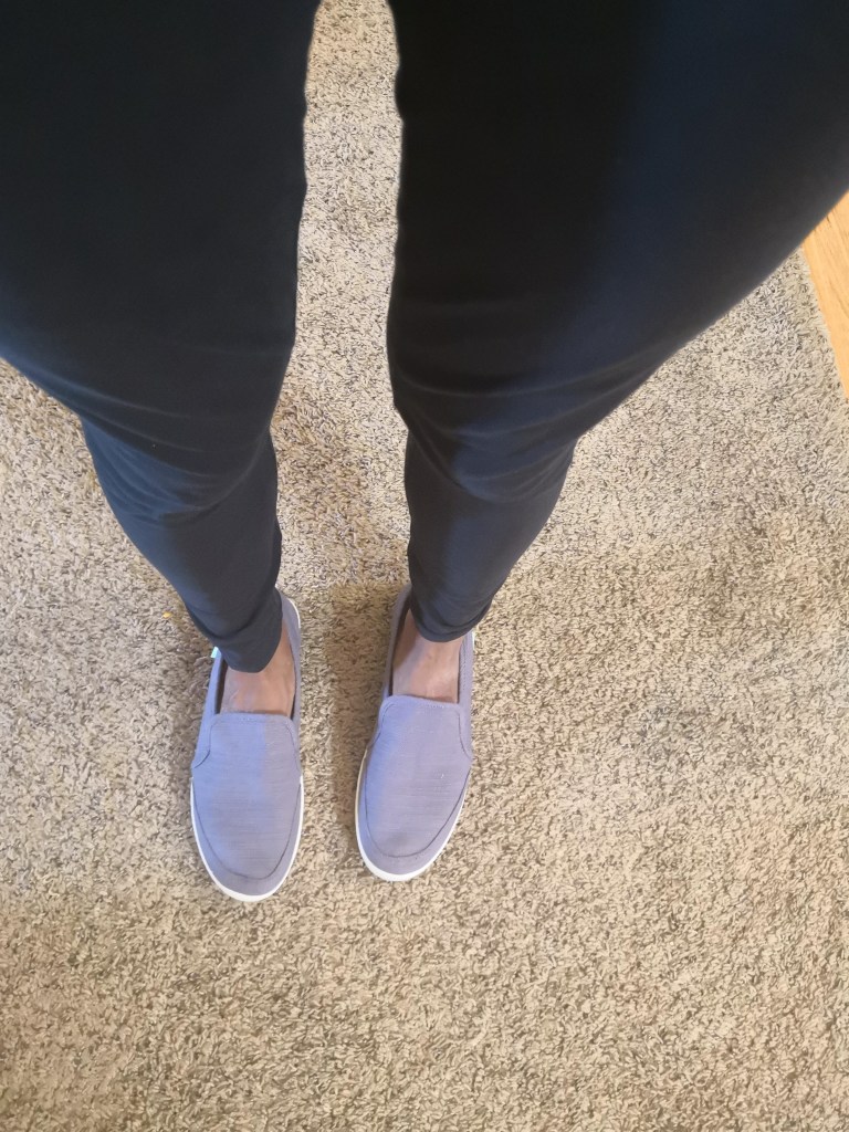 The cute shoes I bought recently are in the picture where I am showing the leggings. They are from the Sanuk brand on Amazon.