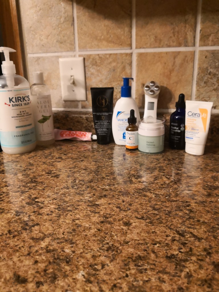 - Cleanser: I use Kirk’s Head-to-Toe Nourishing Cleaners (fragrance-free) for my face when I am in the shower and Vanicream Facial Cleanser when I am not. They both make my skin feel clean but not stripped which I love.