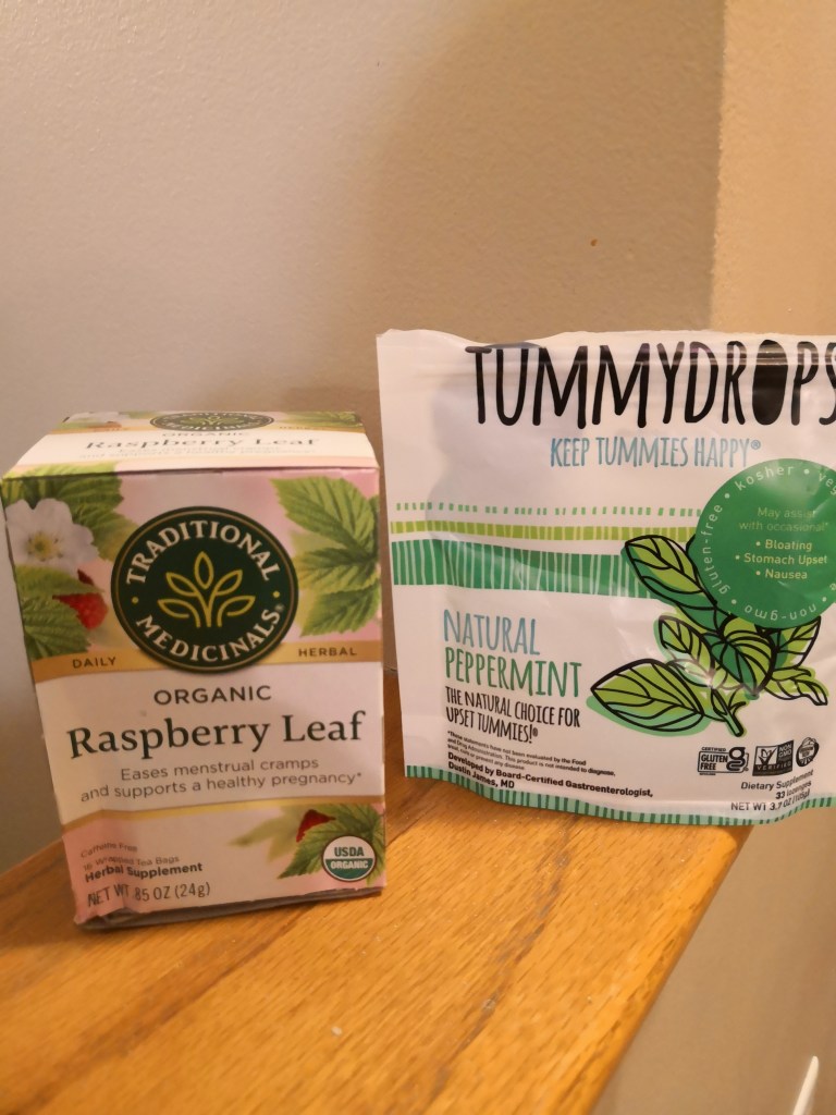 For the past few months, I have honestly been able to breath through things a lot and do some pacing which has helped so much with the hormonal nausea. If I feel like the nausea is too strong for those two things, I will then start brewing up two cups of red raspberry leaf tea and suck on a piece of peppermint candy.
